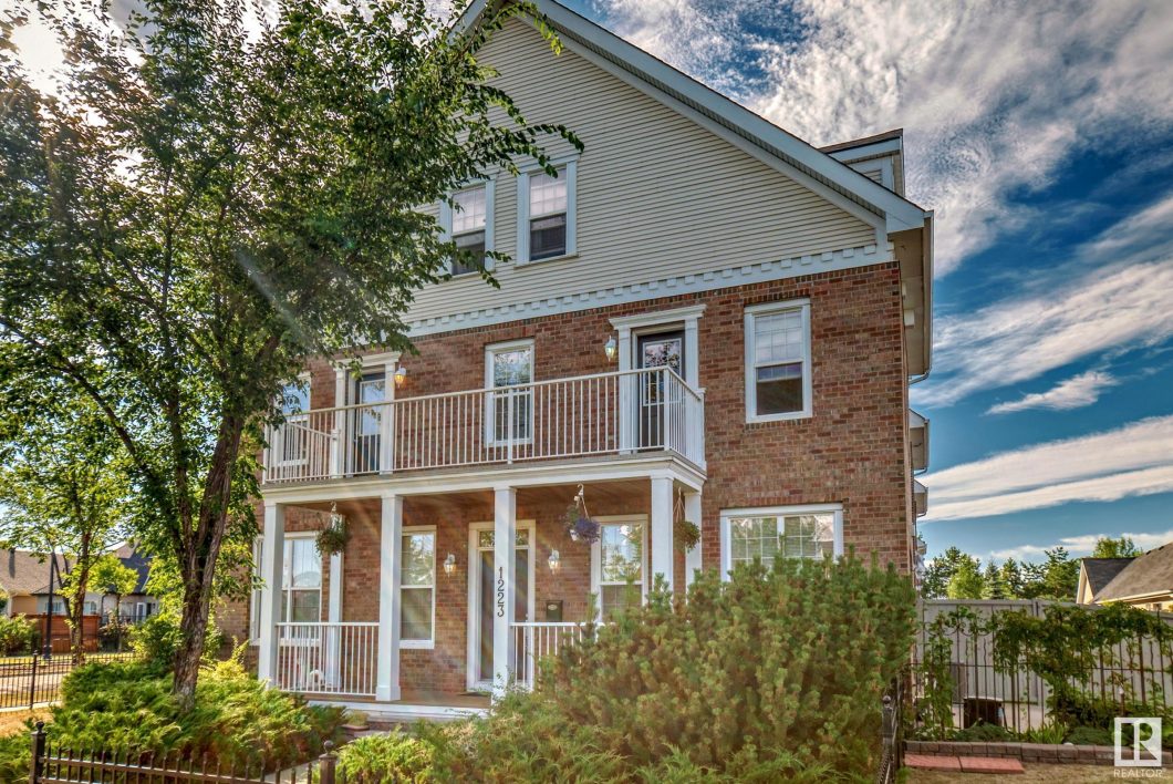 Welcome to this executive townhome in community of Griesbach. Distinctive architectural design, corner unit with spacious fully fenced backyard and double detached garage. Take relaxing walks around Patricia Lake or take in its relaxing view from your bedroom balcony. Spacious formal dining area surrounded by tall windows built-in cabinetry and pantry. Galley design kitchen with high-end s/s appliances, is the heart of this home. Livingroom features central gas fireplace, bank of windows and patio doors to your private concrete patio. Upper-level Bonus room with wrap around balcony/deck to bedroom with full ensuite, walk-in closet. Laundry is located on the upper level. Top floor Master bedroom suite features vaulted ceilings, huge walk-in closet and master Ensuite bath made for relaxation. Abundance of natural light throughout the day in every room. Central AC will keep you cool on summer nights. Basement has plenty future potential with rough-in for future bath.