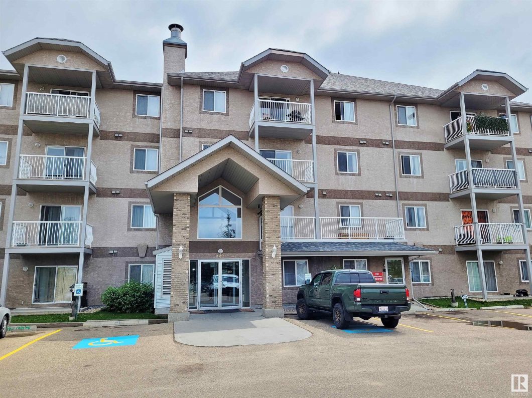 Ideal place for a couple or single person looking for a fresh start. Livingroom has plenty of space for furniture with doors to private balcony overlooking trees and park. Easy to keep clean with laminate flooring throughout the unit. Maple cabinets, black appliances, S/S dishwasher and raised serving bar overlooking the kitchen. Large in-suite walk-in storage room for all the extras. Mirror closet doors by the front entry door, and linen closet in the hallway. Full bathroom includes white fixtures, matching maple vanity and stacked washer/dryer. Master bedroom will accommodate a queen-sized bed and storage dressers. Titled underground parking stall is included with the sale of this unit. Great location within walking distance to TransAlta Leisure Centre, sports fields, sports park and basic services.