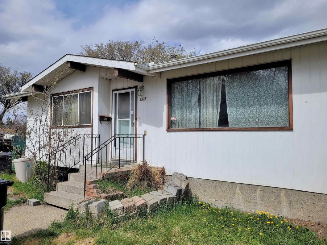 Perfect investment property or opportunity for first-time home buyers to start building equity. Corner lot, half duplex on a large, fully fenced lot with two entrances from the outside. Generous living room with picture window facing sunny southside. Ceramic tile flooring in living room, kitchen and entry. Galley kitchen open to sunny breakfast nook, 3 bedrooms on the main floor and full bathroom. Second separate side entrance with long closet (possible future laundry), this area could be enclosed to separate main and basement level. The basement is open and could be divided for additional rooms, a full bathroom, a laundry room, and plenty of storage. Single detached garage is just a few steps away and will keep your car safe and secure or provide extra, revenue or storage space. Great location with easy access to major shopping, public transportation and Yellowhead.